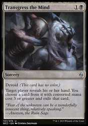 | Card Text | Devoid (This card has no color.) Target player reveals his or her hand. You choose a card from it with converted mana cost 3 or greater and exile that card. |