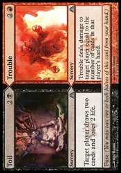 | Card Text | Trouble deals damage to target player equal to the number of cards in that player s hand. Fuse (You may cast one or both halves of this card from your hand.) |