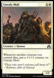 Card TextWhenever another creature you control dies, put a +1/+1 counter on Unruly Mob.