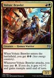 | Card Text | When Voltaic Brawler enters the battlefield, you get {E}{E} (two energy counters). Whenever Voltaic Brawler attacks, you may pay {E}. If you do, it gets +1/+1 and gains trample until end of turn. |