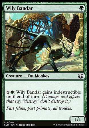 Card Text{2}{G}: Wily Bandar gains indestructible until end of turn. (Damage and effects that say "destroy" don't destroy it.)