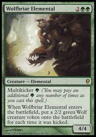 | Card Text | Multikicker {G} (You may pay an additional {G} any number of times as you cast this spell.) When Wolfbriar Elemental enters the battlefield, put a 2/2 green Wolf creature token onto the battlefield for each time it was kicked. |