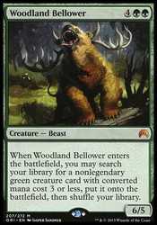 | Card Text | When Woodland Bellower enters the battlefield, you may search your library for a nonlegendary green creature card with converted mana cost 3 or less, put it onto the battlefield, then shuffle your library. |