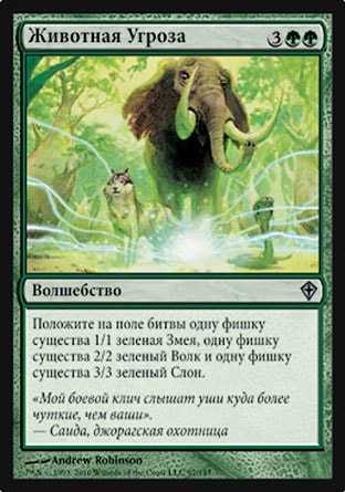| Card Text | Put a 1/1 green Snake creature token, a 2/2 green Wolf creature token, and a 3/3 green Elephant creature token onto the battlefield. |