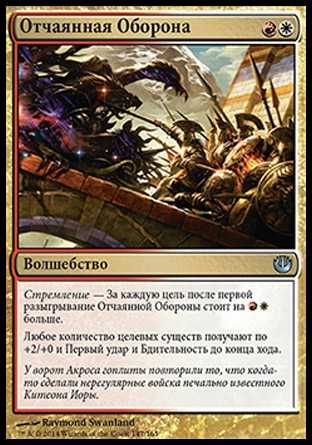 | Card Text | Strive - Desperate Stand costs ![]() more to cast for each target beyond the first.Any number of target creatures each get +2/+0 and gain first strike and vigilance until end of turn. |