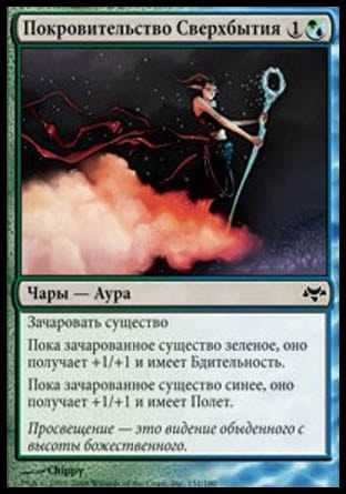 | Card Text | Enchant creature As long as enchanted creature is green, it gets +1/+1 and has vigilance. As long as enchanted creature is blue, it gets +1/+1 and has flying. |