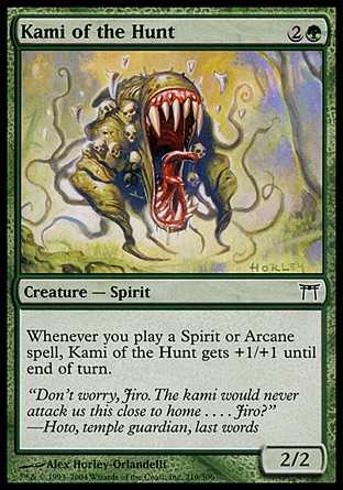| Card Text | Whenever you cast a Spirit or Arcane spell, Kami of the Hunt gets +1/+1 until end of turn. |