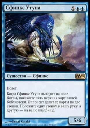 | Card Text | Flying When Sphinx of Uthuun enters the battlefield, reveal the top five cards of your library. An opponent separates those cards into two piles. Put one pile into your hand and the other into your graveyard. |