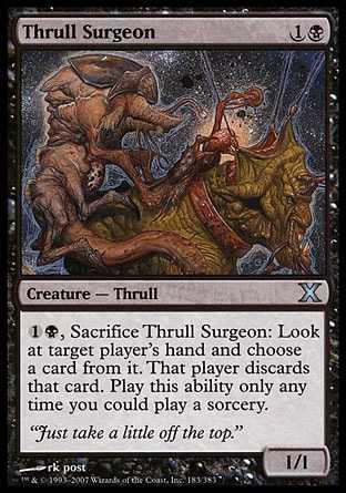 | Card Text | ![]() , Sacrifice Thrull Surgeon: Look at target player"s hand and choose a card from it. That player discards that card. Activate this ability only any time you could cast a sorcery. |