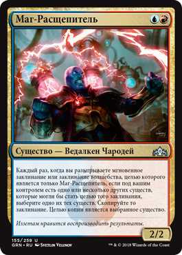 | Card Text | Whenever you cast an instant or sorcery spell that targets only Beamsplitter Mage, if you control one or more other creatures that spell could target, choose one of those creatures. Copy that spell. The copy targets the chosen creature. |