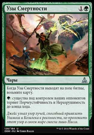 | Card Text | When Bonds of Mortality enters the battlefield, draw a card. {G}: Creatures your opponents control lose hexproof and indestructible until end of turn. |