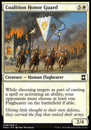 | Card Text | While choosing targets as part of casting a spell or activating an ability, your opponents must choose at least one Flagbearer on the battlefield if able. |