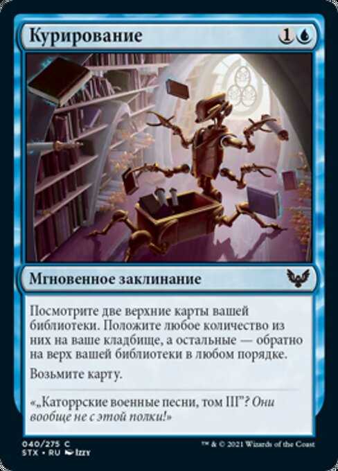 | Card Text | Look at the top two cards of your library. Put any number of them into your graveyard and the rest back on top of your library in any order. Draw a card. |