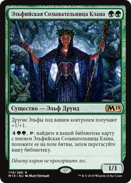 | Card Text | Other Elves you control get +1/+1. {4}{G}{G}, {T}: Search your library for a card named Elvish Clancaller, put it onto the battlefield, then shuffle your library. |
