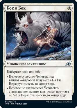 | Card Text | Choose one or both— • Target Human creature you control gets +1/+1 and gains indestructible until end of turn. • Target non-Human creature you control gets +1/+1 and gains indestructible until end of turn. |