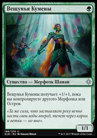 | Card Text | Kumena's Speaker gets +1/+1 as long as you control another Merfolk or an Island. |