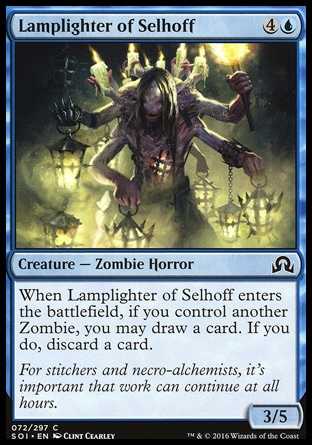 | Card Text | When Lamplighter of Selhoff enters the battlefield, if you control another Zombie, you may draw a card. If you do, discard a card. |