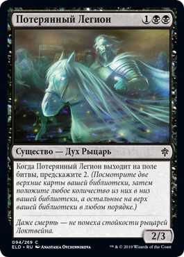 | Card Text | When Lost Legion enters the battlefield, scry 2. (Look at the top two cards of your library, then put any number of them on the bottom of your library and the rest on top in any order.) |