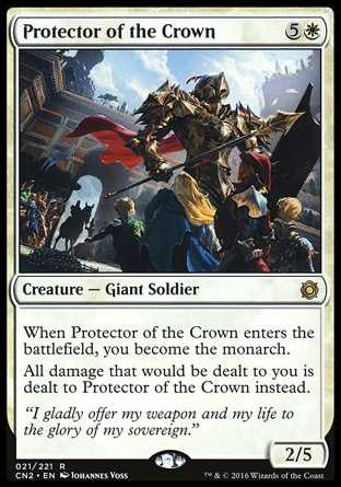 | Card Text | When Protector of the Crown enters the battlefield, you become the monarch. All damage that would be dealt to you is dealt to Protector of the Crown instead. |
