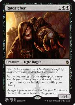 | Card Text | Fear (This creature can't be blocked except by artifact creatures and/or black creatures.) At the beginning of your upkeep, you may search your library for a Rat card, reveal it, put it into your hand, then shuffle your library. |