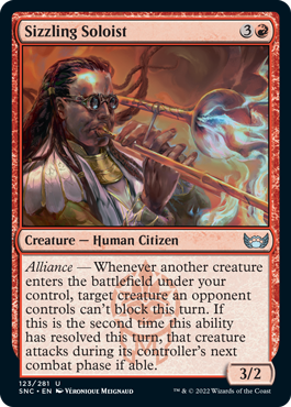 | Card Text | Alliance — Whenever another creature enters the battlefield under your control, target creature an opponent controls can't block this turn. If this is the second time this ability has resolved this turn, that creature attacks during its controller's next combat phase if able. |