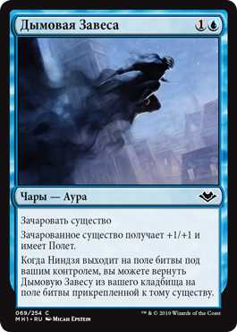 | Card Text | Enchant creature Enchanted creature gets +1/+1 and has flying. When a Ninja enters the battlefield under your control, you may return Smoke Shroud from your graveyard to the battlefield attached to that creature. |