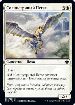 | Flavor | Chosen by Heliod, Daxos approached the pegasus without fear, and rode it without saddle or reins. |