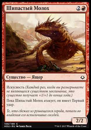 | Card Text | Prowess (Whenever you cast a noncreature spell, this creature gets +1/+1 until end of turn.) Thorned Moloch has first strike as long as it's attacking. |