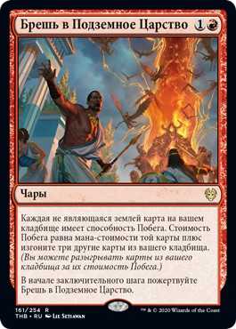 | Card Text | Each nonland card in your graveyard has escape. The escape cost is equal to the card's mana cost plus exile three other cards from your graveyard. (You may cast cards from your graveyard for their escape cost.) At the beginning of the end step, sacrifice Underworld Breach. |